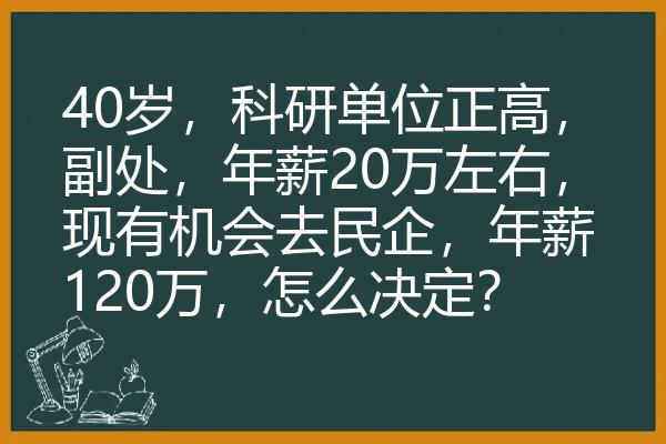 40岁,科研单位正高,副处,年薪20万左右,现有机会去民企,年薪120万,怎么决定?