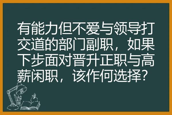 有能力但不爱与领导打交道的部门副职,如果下步面对晋升正职与高薪闲职,该作何选择?