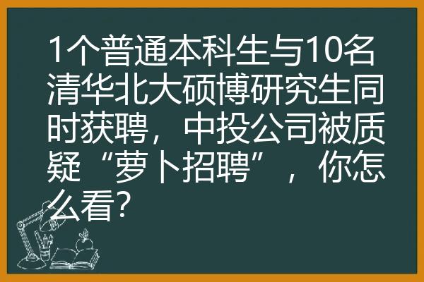 1个普通本科生与10名清华北大硕博研究生同时获聘,中投公司被质疑“萝卜招聘”,你怎么看?