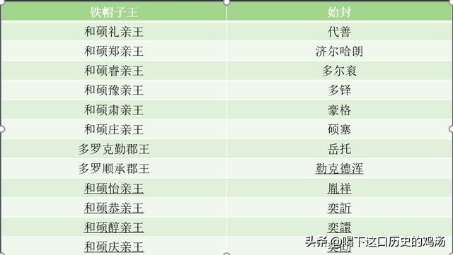 先来看看十二位铁帽子王是谁,再看看清朝灭亡的时候都传到了谁头上,最后再一一分析一下。