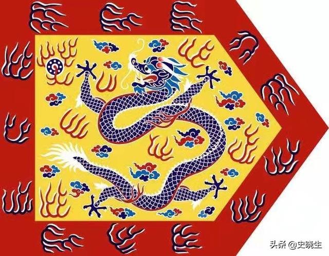 5、八旗时代公元1615年,建州已经吞并除叶赫之外的所有女真部落,江山更加稳定,人口不断增多,牛录数量基本已经达到最初建旗时的百倍有余,努尔哈赤为了进一步规范管理,就把四旗扩充为八旗,很简单的扩充方式就是把每个旗分为正和镶,旗帜颜色不变,只是镶旗中间加了一条龙而已。