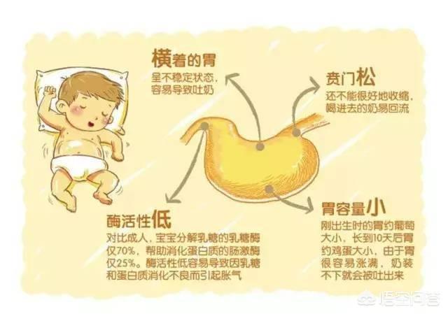 新生儿的消化系统发育还不完全,胃部和食管相连处有一个小“开关”叫做“贲门”,这个开关是防止胃部食物反流到食道中,小宝宝的贲门还没有发育完全,且胃部的位置是呈现水平状的,还没有形成与成人胃部一样的生理弯曲。