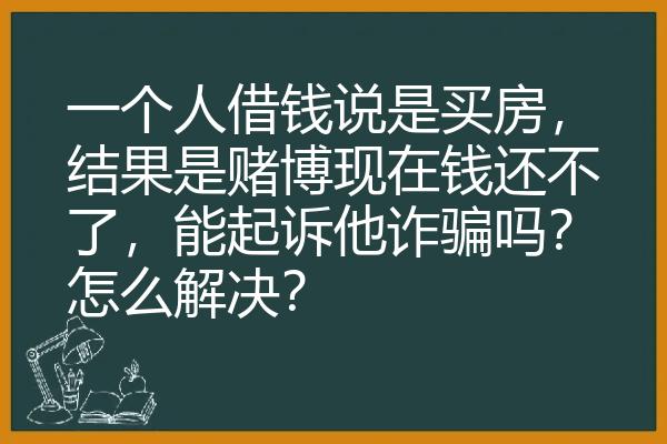 一个人借钱说是买房,结果是赌博现在钱还不了,能起诉他诈骗吗?怎么解决?