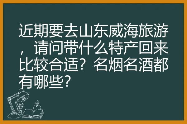 山东的特产数不胜数、也很出名!近期你要去山东威海旅游,我为你介绍的出产于山东威海知名特产5款、带回来比较合适:1、威海海带;2、威海海参;3、威海无花果;4、威海小国光苹果;5、威海大花生等。名烟、名酒都有这些:山东名烟:将军、泰山、哈德门等;山东名酒:青岛啤酒、一品景芝酒、古贝春酒、泰山特曲、扳倒井、孔府家酒、花冠酒、兰陵,清照酒、趵突泉、景阳冈等。请予以采纳、🙏谢谢!
