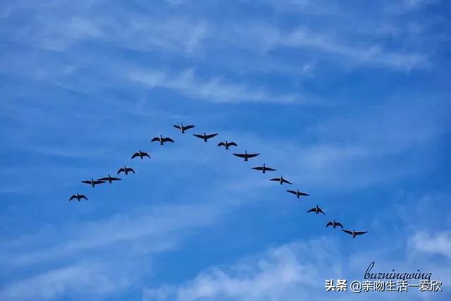 我记得小的时候,我在水塘边玩,也是每年秋天这个季节,时常会发现天空出现一排“人”字型的大雁在飞翔,听着那一声声相互鼓励的啼唤声,我会抬起头去,感觉它们特别的神奇,竟然排成那么整齐的阵容往南飞。我会一直把它们目送好远,直到那流动的“人”字在天空渐渐变小、消失不见。