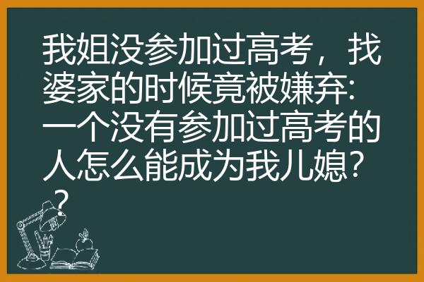 我姐没参加过高考,找婆家的时候竟被嫌弃:一个没有参加过高考的人怎么能成为我儿媳? ?