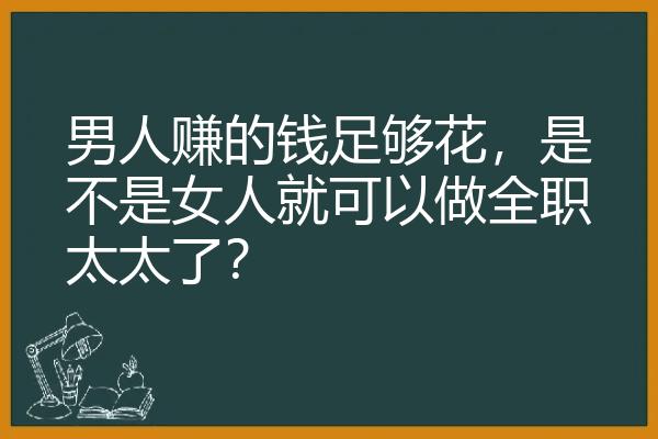 我的个看法比较民主,无论我挣有多少钱,老婆都可以根据她的爱好,选择工作成不工作。生活