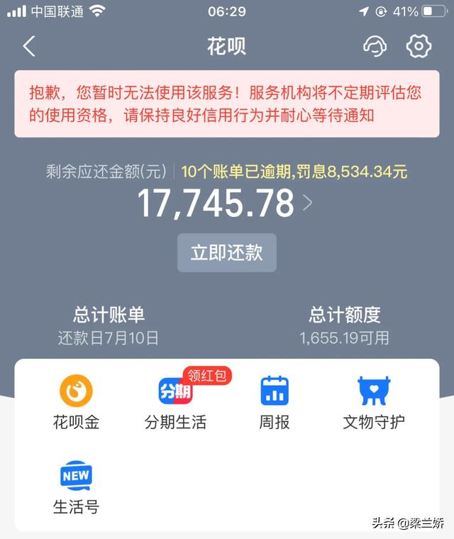 然而我的花呗,我也在不断的沟通,希望能够减免利息,因为我的额度只有10,500块,而我只使用了8000多块钱,他就把我给冻结了,连钱都没用完,感觉太冤枉了。