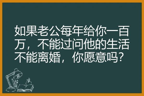 如果老公每年给你一百万,不能过问他的生活不能离婚,你愿意吗?