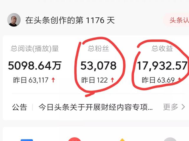 我在头条收获了什么这里,我不打官腔,说点实在的,头条上这几年,收获了五万三千多粉丝,金济收入看得到的17800元左右,看不到的有万把元。
