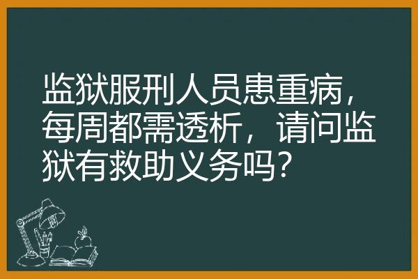 监狱服刑人员患重病,每周都需透析,请问监狱有救助义务吗?