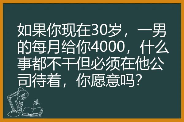 如果你现在30岁,一男的每月给你4000,什么事都不干但必须在他公司待着,你愿意吗?