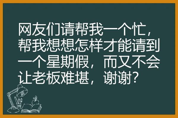 网友们请帮我一个忙,帮我想想怎样才能请到一个星期假,而又不会让老板难堪,谢谢?
