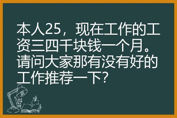 本人25,现在工作的工资三四千块钱一个月。请问大家那有没有好的工作推荐一下?