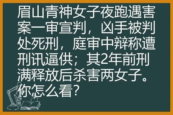 眉山青神女子夜跑遇害案一审宣判,凶手被判处死刑,庭审中辩称遭刑讯逼供;其2年前刑满释放后杀害两女子。你怎么看?