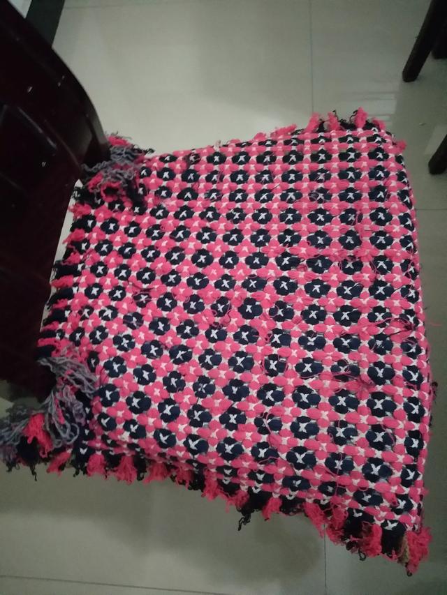 总结:平时不穿的毛线衣,妈妈喜欢把毛线拆下来了,织成她会做的抱枕,沙发垫,毛线棉拖鞋。
