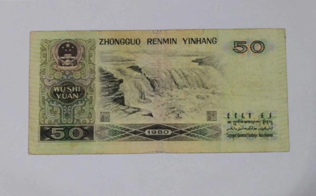 第四套人民币50元分两种版别,第一种版别于1987年4月27日发行,1980年号,俗称80版,上市流通几年后,因为防伪性较差,市面上出现假币流通,因此国家宣布对50元人民币纸币,银行只收不付。