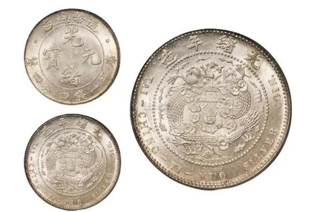 造币总厂光绪元宝,清光绪三十四年(1908年)天津度支部造币总厂铸,库平重量7.029钱,成色90.453%。此币为总厂正式铸币,流通甚广,存世较多。但此币是光绪帝,最后一年的年号币,而特殊是此套币一套三枚,除壹元主币外,另有辅币二角,一角各一枚,辅币要少于壹元主币,辅币里还有错版币存世。错版币为库平一钱四分四厘(二角)币的背面,错铸为宣统年造。这就出现在市场的交流价格,辅币价高于主币的逆袭现象。因此造币总厂铸:光绪元宝:库平七钱二分(一元币)存量大,美品收藏交流价在2000元左右,辅币库平一钱四分四厘(二角币)可达3000元以上,而这错版的:光绪元宝:一钱四分四厘,背宣统年造的收藏交流价可破万元大关。个人认识仅供参考,謝謝编辑!!
