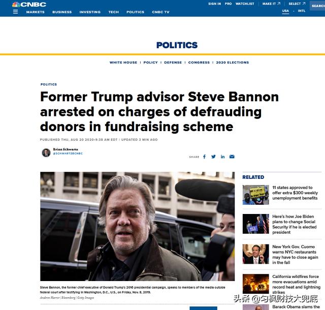 关于这一次的“特朗普前高级顾问史蒂夫·班农曾在两年内共筹集超过2500万美元,涉嫌欺诈被逮捕。”的消息。