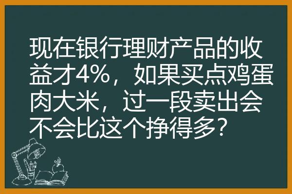 现在银行理财产品的收益才4%,如果买点鸡蛋肉大米,过一段卖出会不会比这个挣得多?