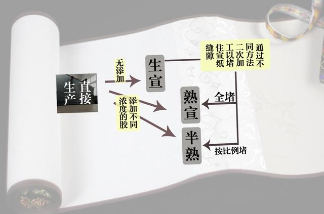 大部分半熟、熟宣来源可以有2种:制造或者(利用生宣宣纸)再加工。