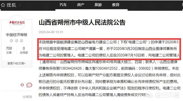 如何看待山西电建二公司拖欠几十亿债务申请破产?