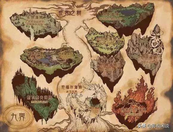 每一界还可以细分为不同的区域,阿斯加德除了阿萨神族和华纳神族生活的区域之外,还有瓦尔哈拉、诺恩海姆和下界三个区域,瓦尔哈拉又叫英灵殿是光荣的死者的领地由海拉掌管,诺恩海姆是“命运三女神”的领域,下界则居住着岩石巨魔,下界在阿斯加德的下方。