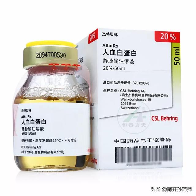 人血白蛋白是人体血浆的正常成分,临床上使用的人血白蛋白属于血液制品,是由正常人的血浆经过低温分离并经乙肝病毒灭活后制成,具有广泛的生理活性,能够使血浆维持正常胶体渗透压,转运药物和多种营养物质,抑制氧化应激反应,清除氧自由基,为组织器官提供营养,抑制血小板聚集和血液凝固,在临床上可用于治疗失血性创伤、烧伤引起的休克、脑水肿及损伤引起的颅压升高、肝硬化及肾病引起的水肿或腹水以及新生儿高胆红素血症,还可用于防治低蛋白血症,并可用于心肺分流术、烧伤的辅助治疗。人血白蛋白具有良好的安全性和耐受性,副作用发生率非常低,罕有发生,有个别患者可出现恶心、呕吐、发热、寒颤、头痛、皮肤潮红等症状,输注过快时(20-50ml/min),可引起低血压,老年患者可能诱发心力衰竭,尤其输注高浓度白蛋白时。此外,人血白蛋白具有免疫源性,个别病例可引起皮疹、瘙痒、荨麻疹、呼吸困难、低血压、心律失常等过敏反应,甚至诱发过敏性休克,因此,人血白蛋白应缓慢滴注,控制速度,每分钟最好不要超过5ml。