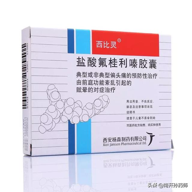 西比灵,药品名叫做盐酸氟桂利嗪,是一种选择性钙通道阻滞剂,能防止因缺血等原因导致的细胞内病理性钙超载而造成的细胞损害。
