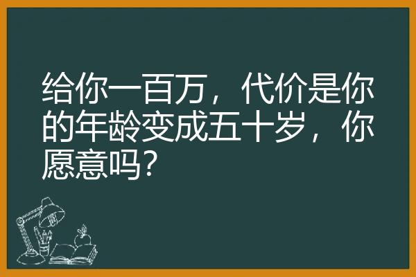 给你一百万,代价是你的年龄变成五十岁,你愿意吗?