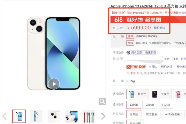 然后这部手机用了半个月就卖了,原因很简单,用不习惯,小亏了500元卖给一个店铺了;所以这一折腾,也没损失什么。而今年618,iPhone13这种机型的优惠还是挺大的,如果能以一个极低的价格买到,那出手完全不会亏钱的,甚至有些手机店从PDD上进货卖,这说明苹果还是挺保值的,只要正规途径购买,即使转手卖出去绝对亏不了多少。
