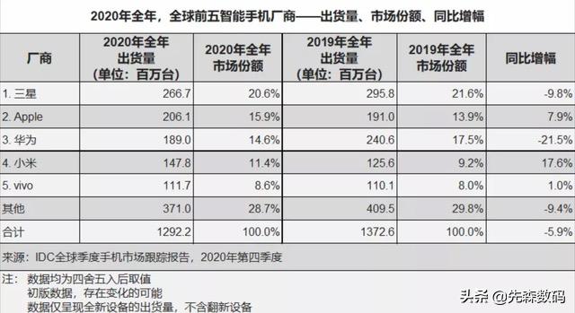 首先、市场总量在下滑,这几年,全球手机市场和国内手机市场总体上呈下滑趋势,虽然近两年因为5G换机潮有所上涨(2020年12.9亿,2019年13.8亿,一年就少了9000万),但不否认手机进程进步很快,消费者换机的周期更长了,所以到了终端厂家,自然竞争就更大了。