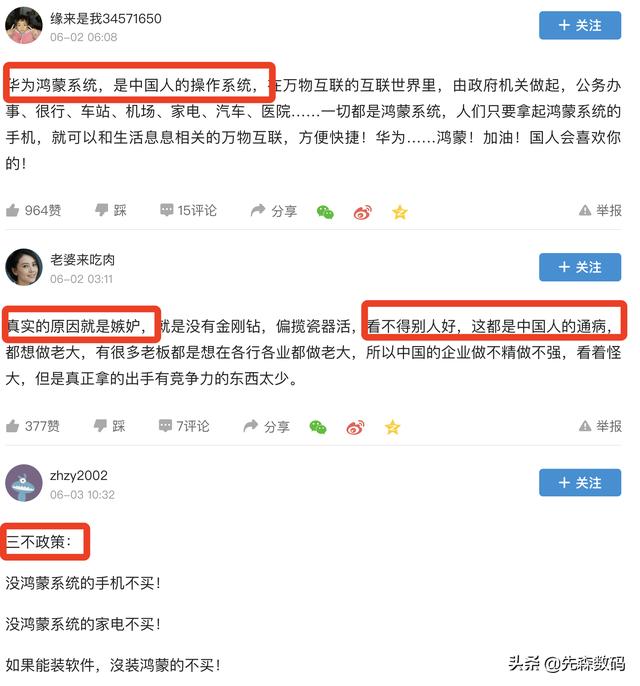 但一些无脑网友对鸿蒙进行猛夸,说“鸿蒙是中国的鸿蒙,大家都该用鸿蒙”、说“其他厂家不用鸿蒙系统就是嫉妒,自己没本事自研系统,看到别人做出来还酸”、说“不支持鸿蒙系统的手机(设备)都不买”。