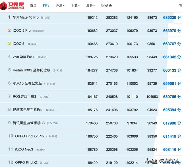 那性能有多强呢?我们先来看看安兔兔跑分排行榜就知道了。目前除了华为新发布的麒麟9000芯片外,IQOO5Pro排名第二(就比5nm芯片的华为Mate40Pro少两万多分),IQOO5排名第三,比很多电竞手机都还猛。