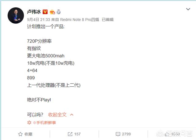 至于卢伟冰怼华为,那是因为在2019年初红米的品牌独立后,小米需要把Redmi和华为荣耀的品牌拉齐,所以通过Redmi频繁的怼华为,可以让消费者有一个潜意识,华为的荣耀就等于Redmi,这样小米自身的MIX等品牌就可以和华为的Mate或者P系列品牌对齐了