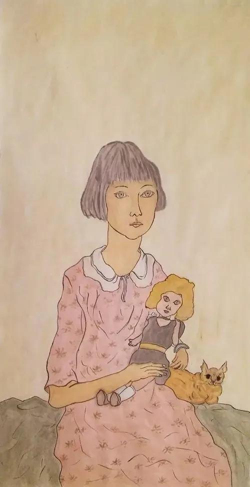 在尝试过多种画法以后,藤田嗣治探索出属于自己的独特画法,把日本的传统水墨形式带入到油画中,他用毛笔画线条,表现出独特的流畅感和韵律感,纤细的墨线勾勒,梦幻一样的明暗感觉,在东西方艺术之间找到了属于他自己的平衡点。
