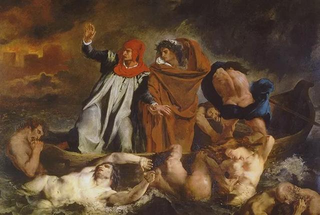 二、德拉克洛瓦的油画油画《但丁之舟》。德拉克罗瓦创作的这幅油画作品,取材于但丁名著《神曲》。作品描绘出头戴月桂花环的诗人维吉尔,引导他的伙伴但丁乘小舟穿越地狱,船头上一围裹着长条蓝布的赤身男子在摇橹划船。浪花翻卷的河水中,几个被罚入地狱者抓住小船不放,其中还有一个女子,水珠在她身上闪光。如此精练的艺术手法,真实的效果,表现出画家浪漫主义绘画的艺术风格。