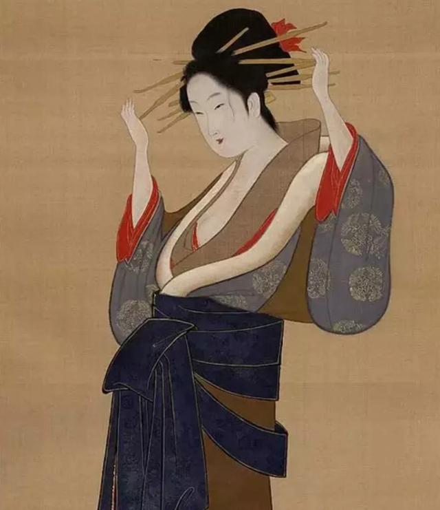 浮世绘后来借鉴唐绘艺术。以美人绘为代表,我们发现它有唐仕女图的特点,比如女人雍容风情之姿、大脸盘子……