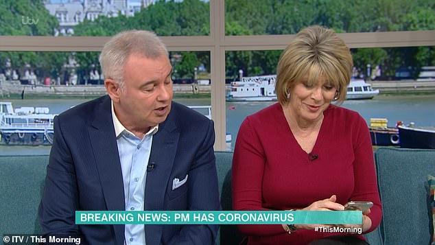 3月27日,英国首相约翰逊被确诊感染了新冠病毒,英国电视女主持人露丝和搭挡丈夫埃蒙在电视前播报新闻公告过程中,露丝看着手机播到首相感染新冠肺炎时忍不住偷偷发笑,从画面中显示,露丝似乎努力在忍住笑声。