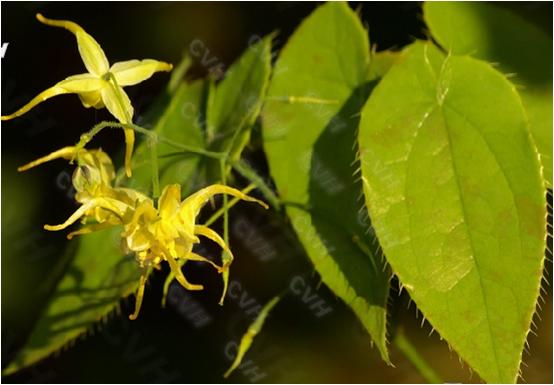 淫羊藿属于多年生草本植物,植株高20-60厘米,根状茎粗短,暗棕褐色,二回三出复叶基生和茎生,具长柄,小叶纸质或厚纸质,叶缘具刺齿,花白色或淡黄色,花期5-6月,果期6-8月。