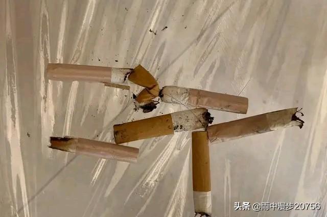 江西凶犯落网后,受害者家属打扫房间,发现凶犯曾春亮遗留三一楼和四楼之间的烟头、4瓶矿泉水瓶、打火机遗留物。