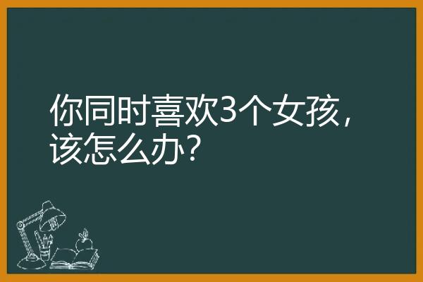 “你同时喜欢3个女孩,该怎么办?”这个问题只能说明你其实并不爱这3个女孩子,喜欢只是好奇或不讨厌而矣,离爱还差一大截呢,因为不爱,才可以或可能同时喜欢上3个,你的爱或许是在456或789后面呢。不过你这种喜欢真的不可取,感情不是儿戏,恋爱不是追奇,千万不要因一时的得意或玩心,而自酿苦果。