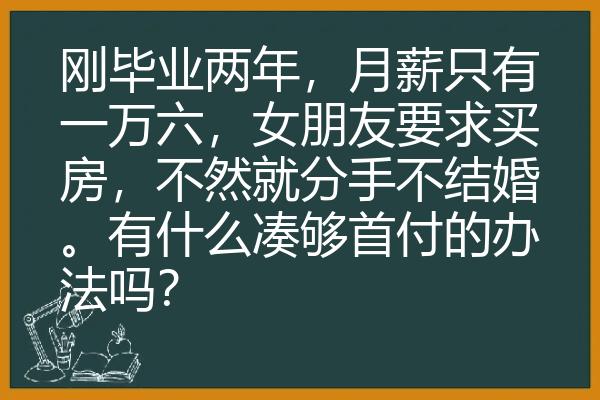 刚毕业两年,月薪只有一万六,女朋友要求买房,不然就分手不结婚。有什么凑够首付的办法吗?