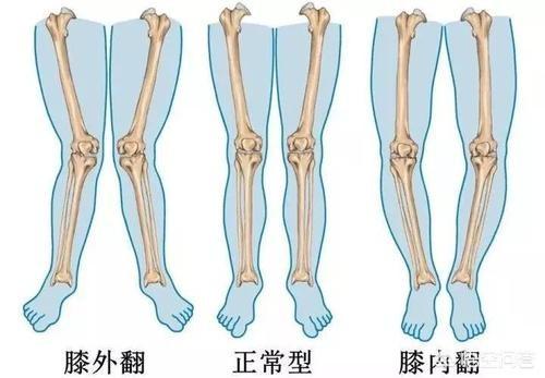 很明显中间边图片的腿是正常的,而右侧图片是典型的“O型腿”,左侧图片是典型的“X型腿”。
