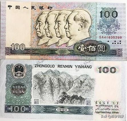 谢邀!小编近日做过几个视频,就刚刚退市的第四套人民币的收藏做了简单的整理。90年100元是属于第四套人民币。第四套人民币100元有80年和90年两个版别,它们的存世量不同,决定的价格是不一样,物以稀为贵!越少越值钱!