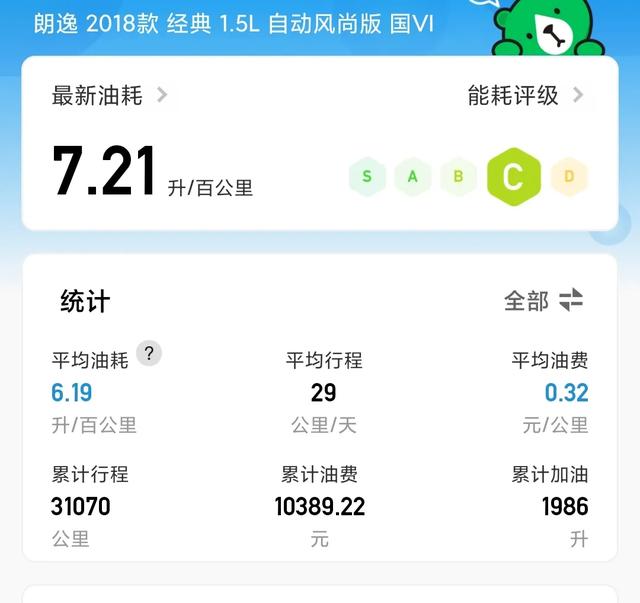 我的车是2018款的经典朗逸,1.5升的发动机,6at的爱信变速箱,油箱是52.5升,到现在跑了3.1万公里,平均油耗是6.2升每百公里。