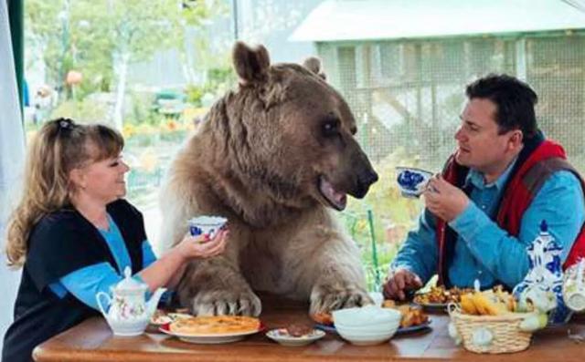 在俄罗斯,熊已经属于他们的图腾了,俄罗斯有各种关于熊的旗帜。而且很多熊都会被家养,和人在一起生活。对于熊来说,俄罗斯人的教导是让他们喜欢的,它们会通过学习,掌握一些帮助人工作的能力。也有很多年轻人,会用自己的伙伴家人,大熊熊来证明自己的婚姻,那真是浪漫啊…这样的熊在俄罗斯很多,而且熊的智商也不低,他们比如说走失了或者被遗弃了,就会流落街头,这个时候就会出现几个强壮的大汉将它们制服,我们就会以为是熊没有攻击力,以为熊打不过俄罗斯人。