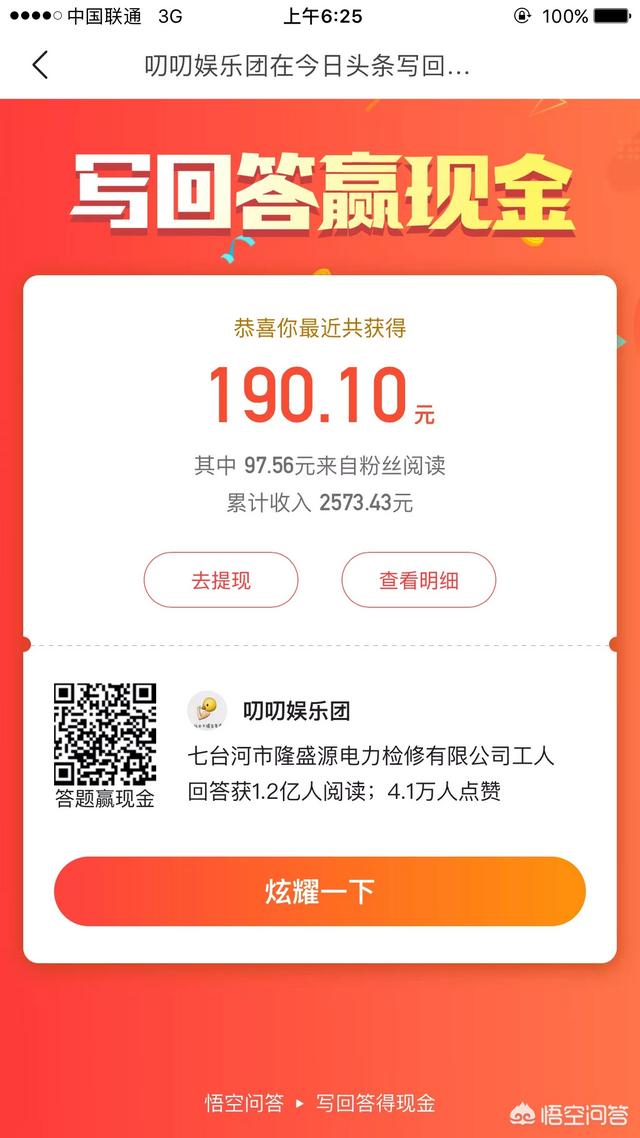回答问题啊,这个给红包的。干的好的一天50 80的轻松,大神一个月上万的。我这种小神一天200多块,也是挺开心的,而且能学到很多很多的知识,这个是钱买不来的。想开通收益的话需要扫描我上面的图片,不然你开通不了收益也是白费,扫描上面的图以后直接就能回答问题。字数多一些,回答的漂亮一些,别车轱辘话来回说。不懂的私信我,我教你。