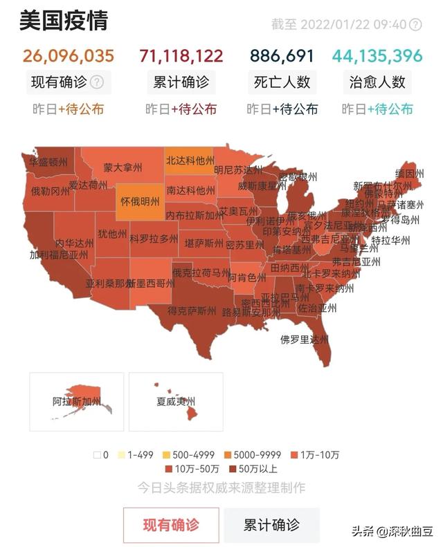 现在美国的疫情依然非常严峻,通常每天的感染人数都在几十万到100万左右,最多的一天新增感染人数接近150万。这数字好大,世界上好些国家的总人口也没到这个数。