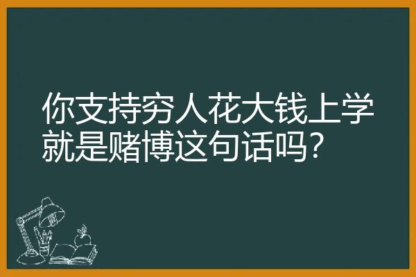 不支持。上好学是穷人家的希望,知识能改变命运,希望将来孩子能有个好前程,是大智慧的选择。如果尽力供应孩子没能考上大学,或大学毕业暂时没找到工作,只要有文化也容易找份工作。赌博是一种违法又败家陋习,上学与赌博两者不能比较。